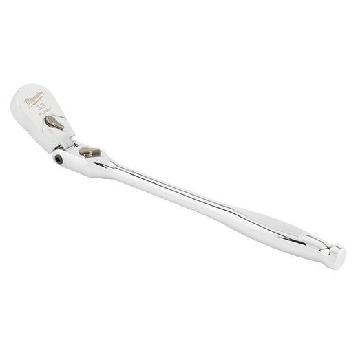 The 3/8” Drive 12” Flex Head Ratchet with a 4⁰ arc swing provides you with better access and is more adaptable to working in spaces with different angles. The ratchet head can be locked into 9 unique positions or left unlocked for free movement during use. The extended handle length offers you increased leverage for stubborn nuts and bolts while the slim profile and flush directional and locking levers offer more accessibility in tight spaces. The all-chrome finish makes cleaning the MILWAUKEE® extended handle flex head ratchet easy. This ratchet is backed with the Mechanics Hand Tools Lifetime Guarantee.