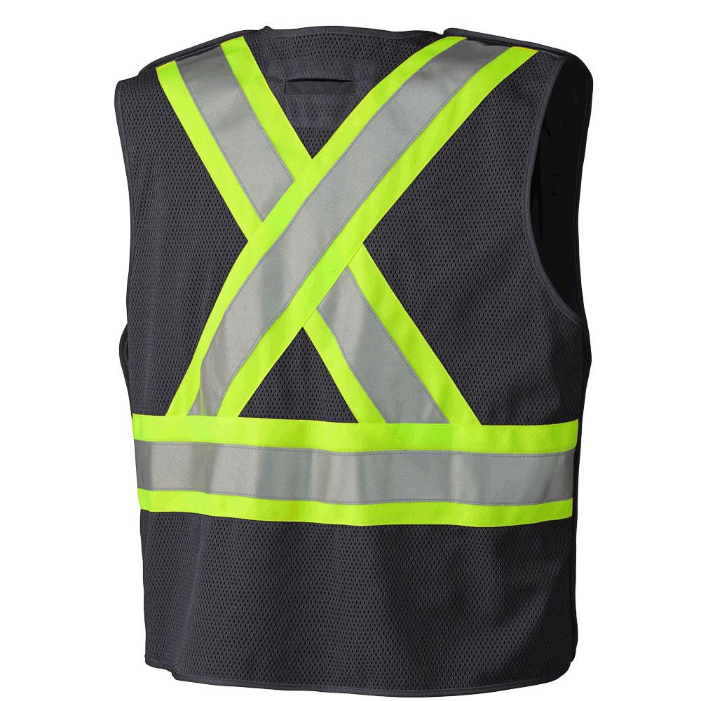 Safety Vest - Pioneer Black Tear-Away Mesh Back Zip Front Vest, 6937
