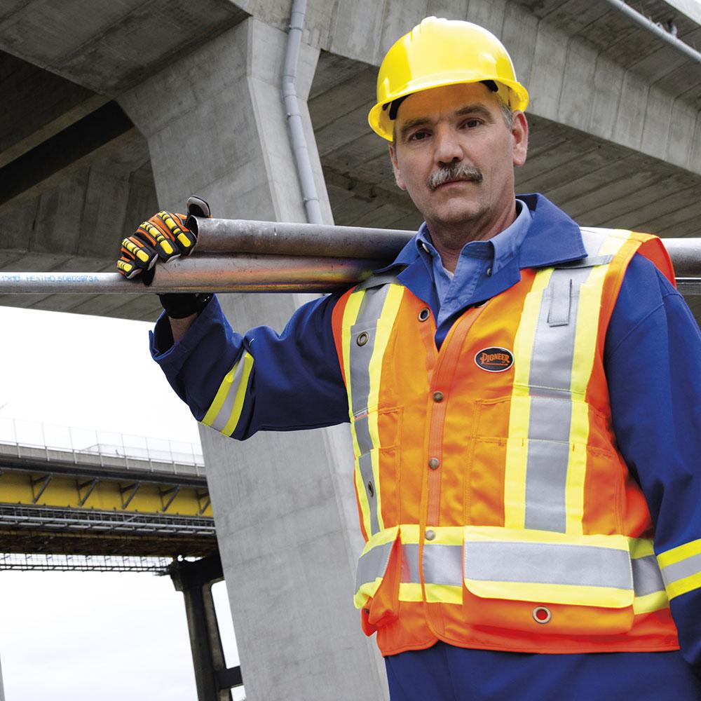 Safety Vest - Pioneer Hi-Viz Orange Woven Twill Poly Surveyors Vest, 6692