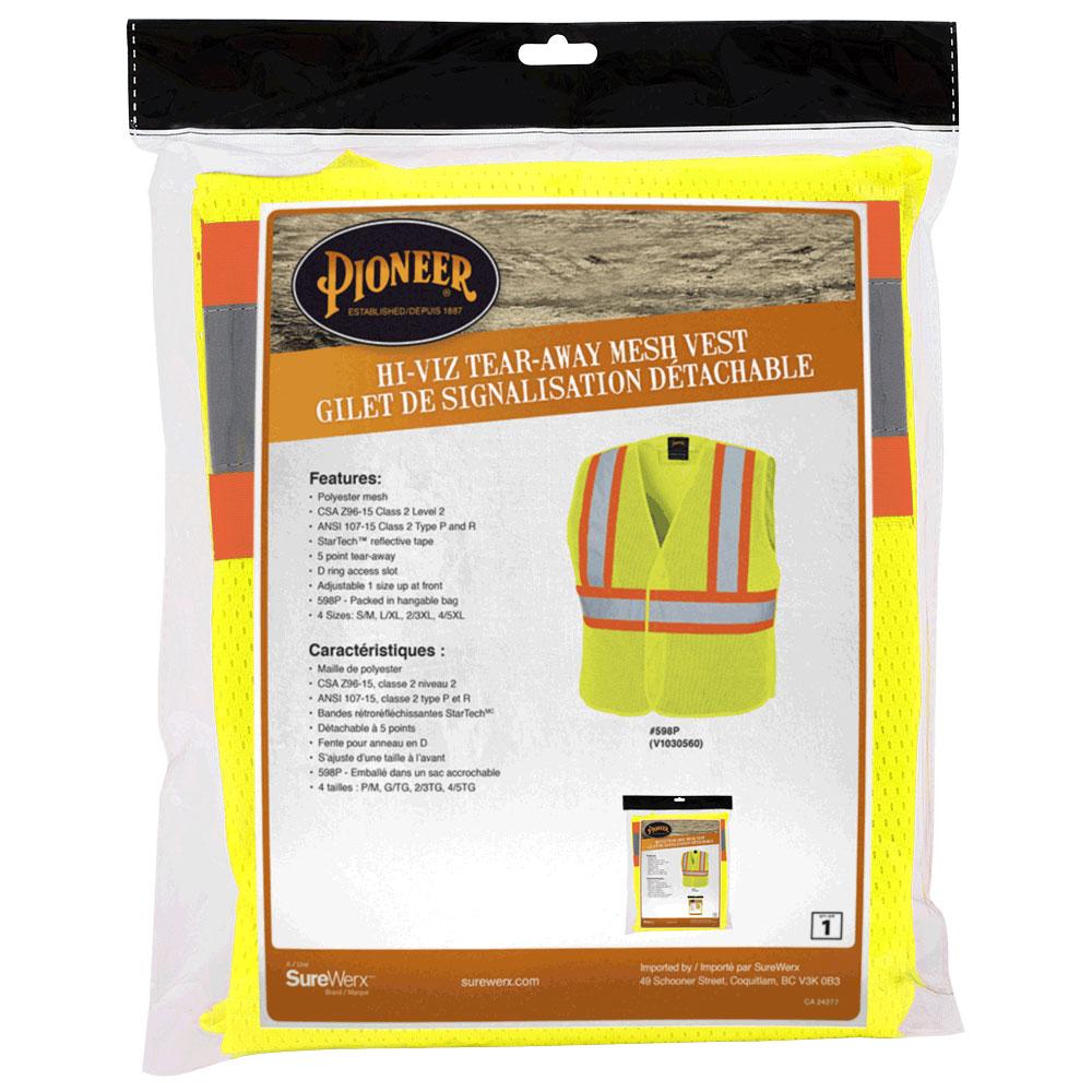 Safety Vest - Pioneer Hi-Viz Yellow/Green Tear-Away Poly Mesh Vest, 598P