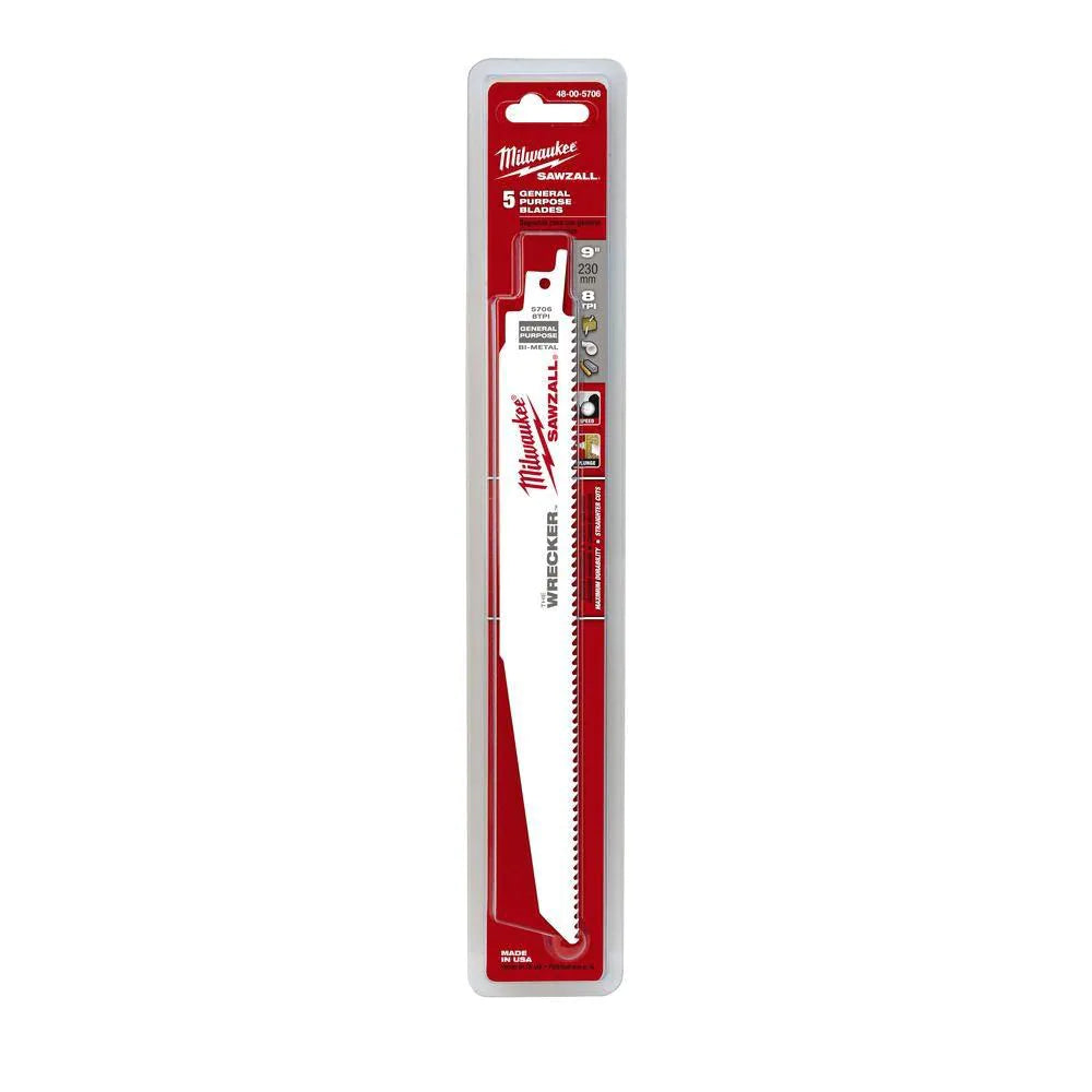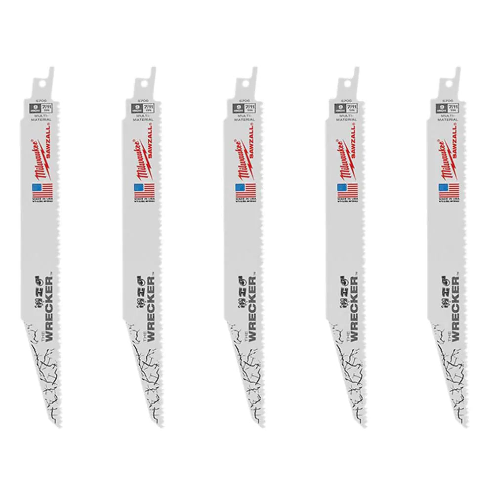 Saw Blades - Milwaukee 9 7/11 TPI Multi-Material THE WRECKER SAWZALL® Blades (pack of 5), 48-00-5706