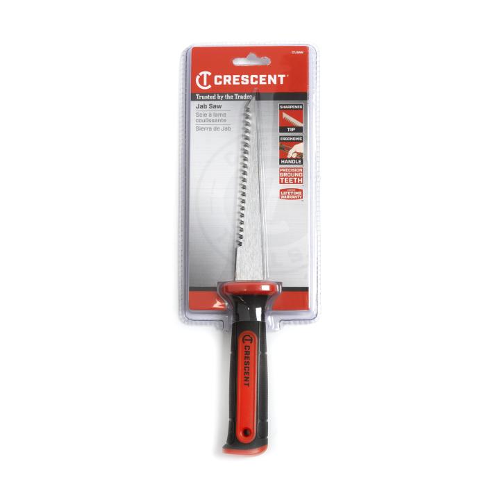 Crescent’s jab saw has a sharpened tip offering a knife-like edge for easier material penetration. Coarse triple tooth design makes for quick and efficient cutting. The handle features an overmolded design for greater user comfort and improved cut control.