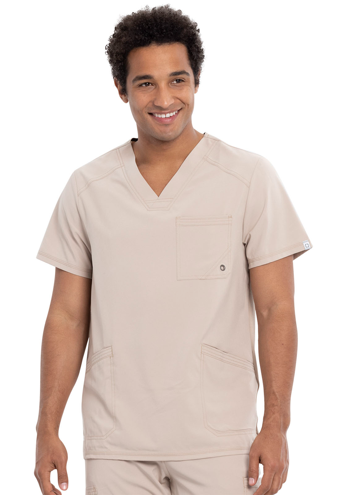 Scrub Top - Cherokee Infinity Mens V-Neck Top - Khaki, CK900A
