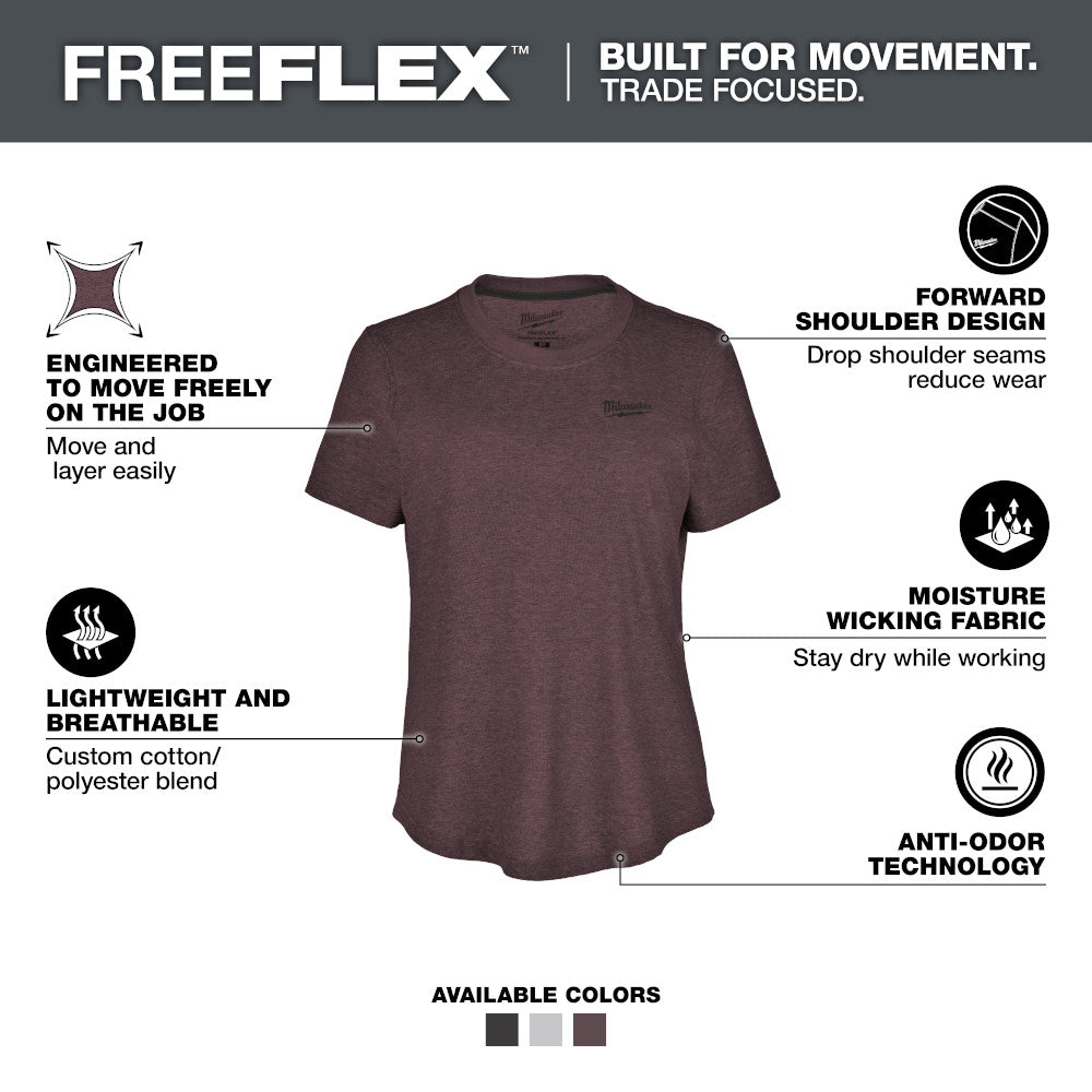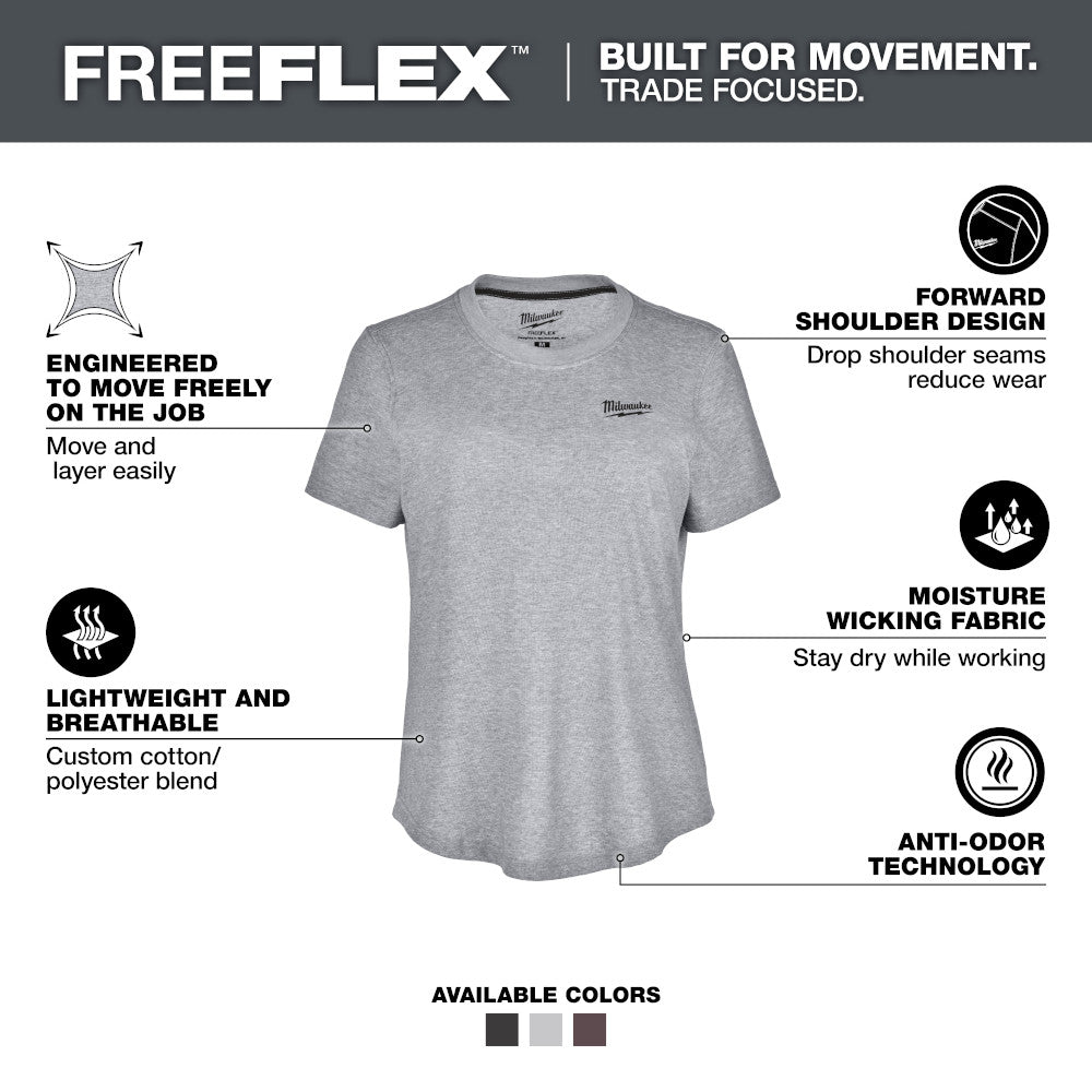 T-Shirt - Milwaukee Women's FREEFLEX™ Hybrid Tee - Short Sleeve (Black, Grey or Purple), F452 - Grey / XS is currently out of stock.