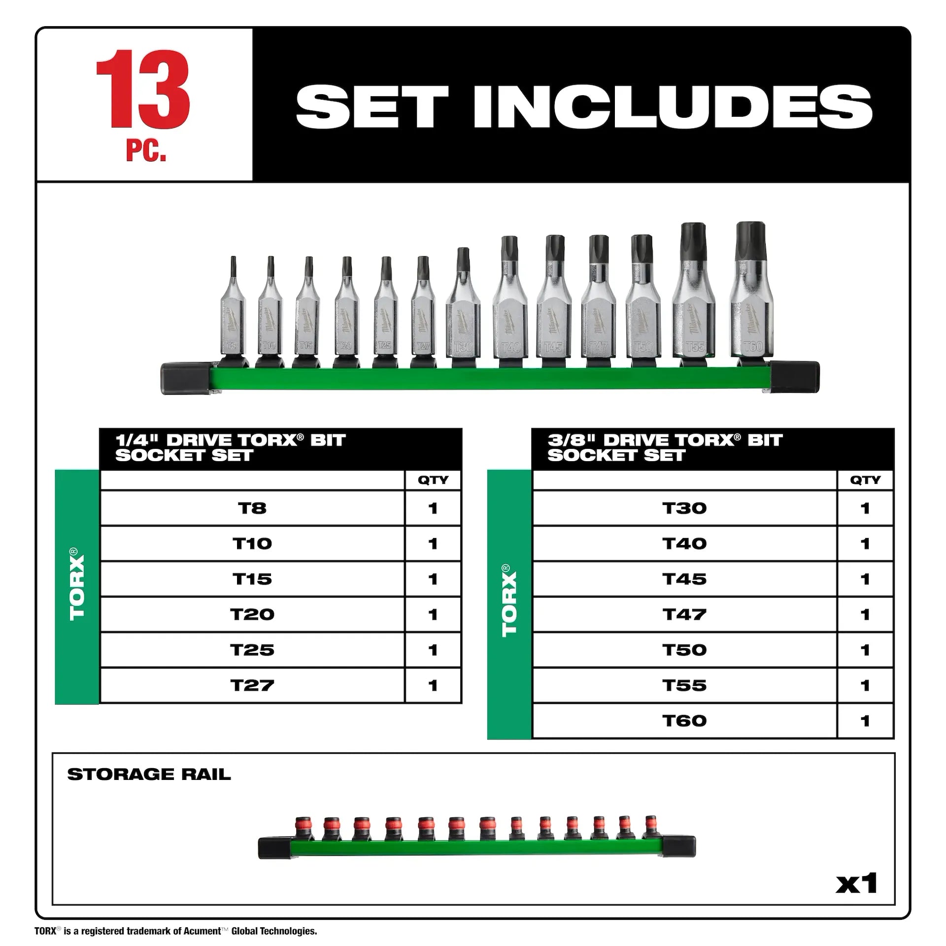 Socket Set - Milwaukee 13pc 1/4 and 3/8 Drive TORX® Bit Socket Set, 48-22-9532