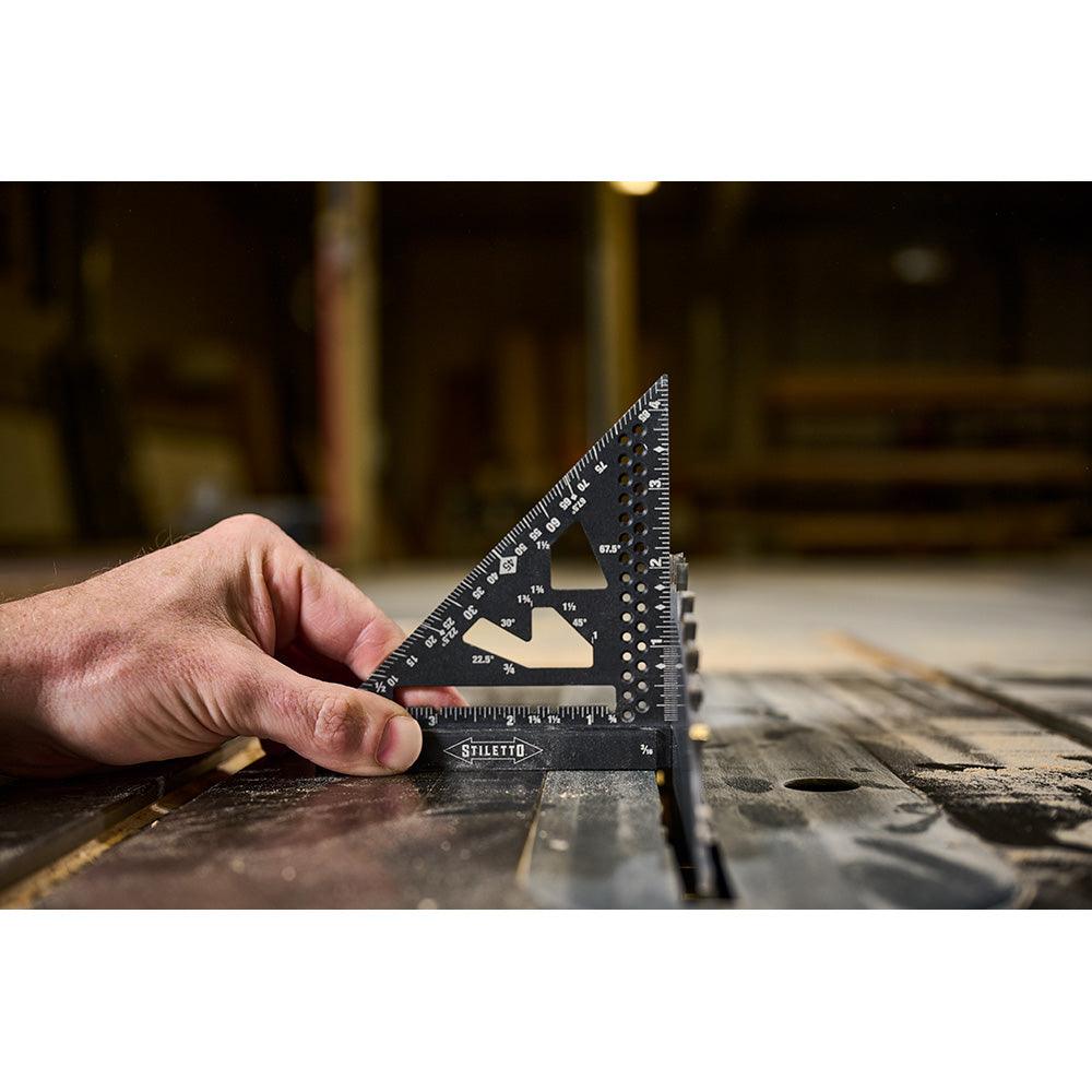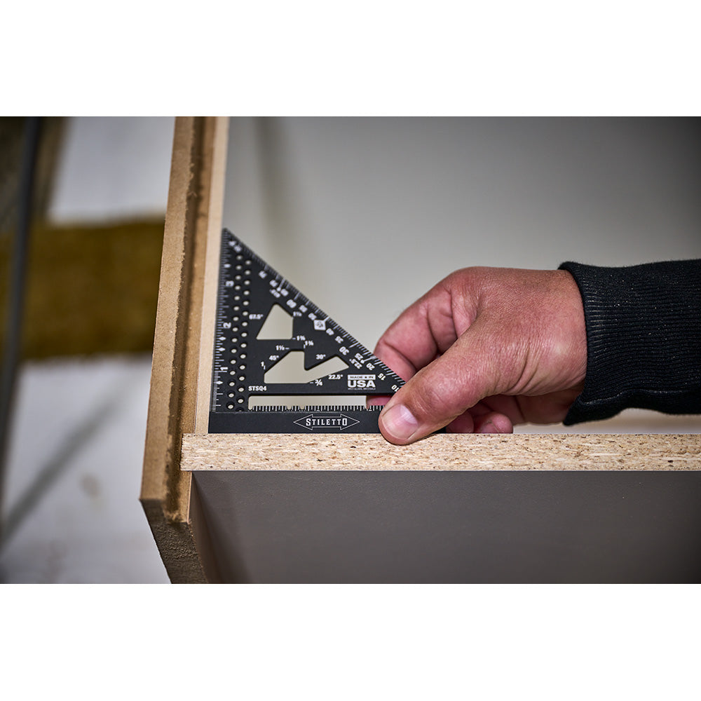 The STILETTO® 4-1/2” Trim Square is designed for precision and efficiency, ideal for finish carpentry. Additional scribe holes aid in laying out common angles, ripping boards, and setting saw blade height. The 1/4” and 3/16” revel gauge help quick set door casings, while the bottom heel ruler provides marking versatility. The 4-1/2” Trim Square is fully machined, with an anti-glare finish and the most durable coating.