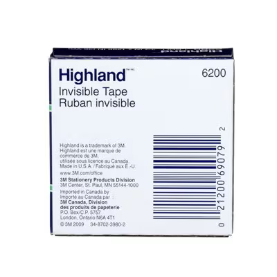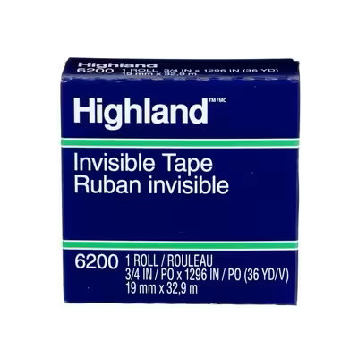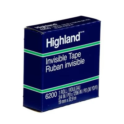 Tape - 3M™ Highland™ Invisible Tape, 19 mm x 32.9 m, 6200-18BXD