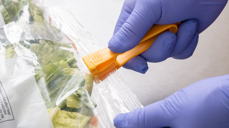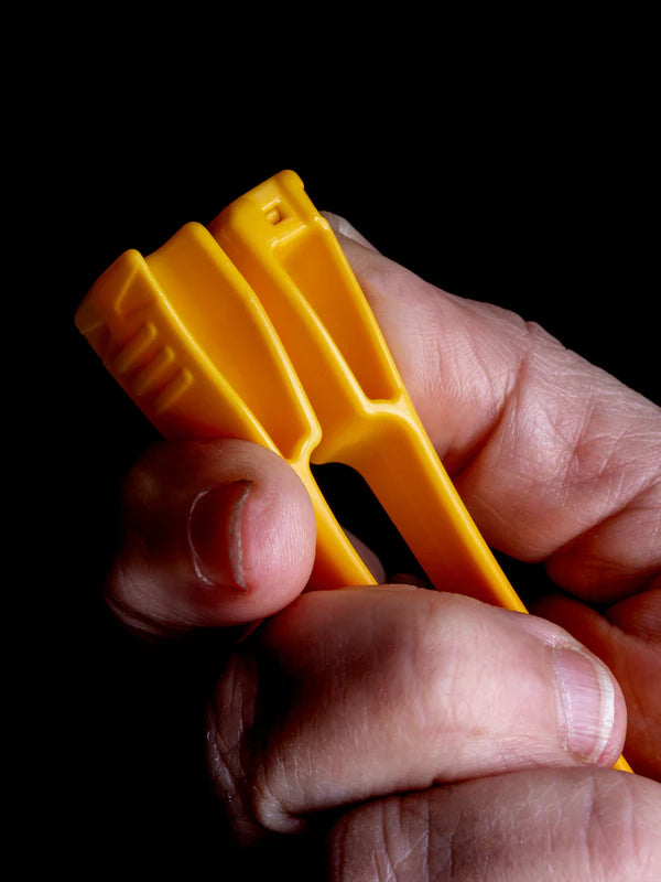 The ultra-sharp stainless-steel blade is recessed between two pinch points to guard the user from blade exposure. Squeeze the ends together and slide the blade through the bag to open. The textured ends prevent slips, even in wet conditions. The symmetrical design allows for both right- and left-handed users.