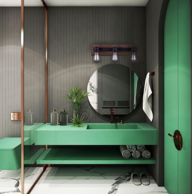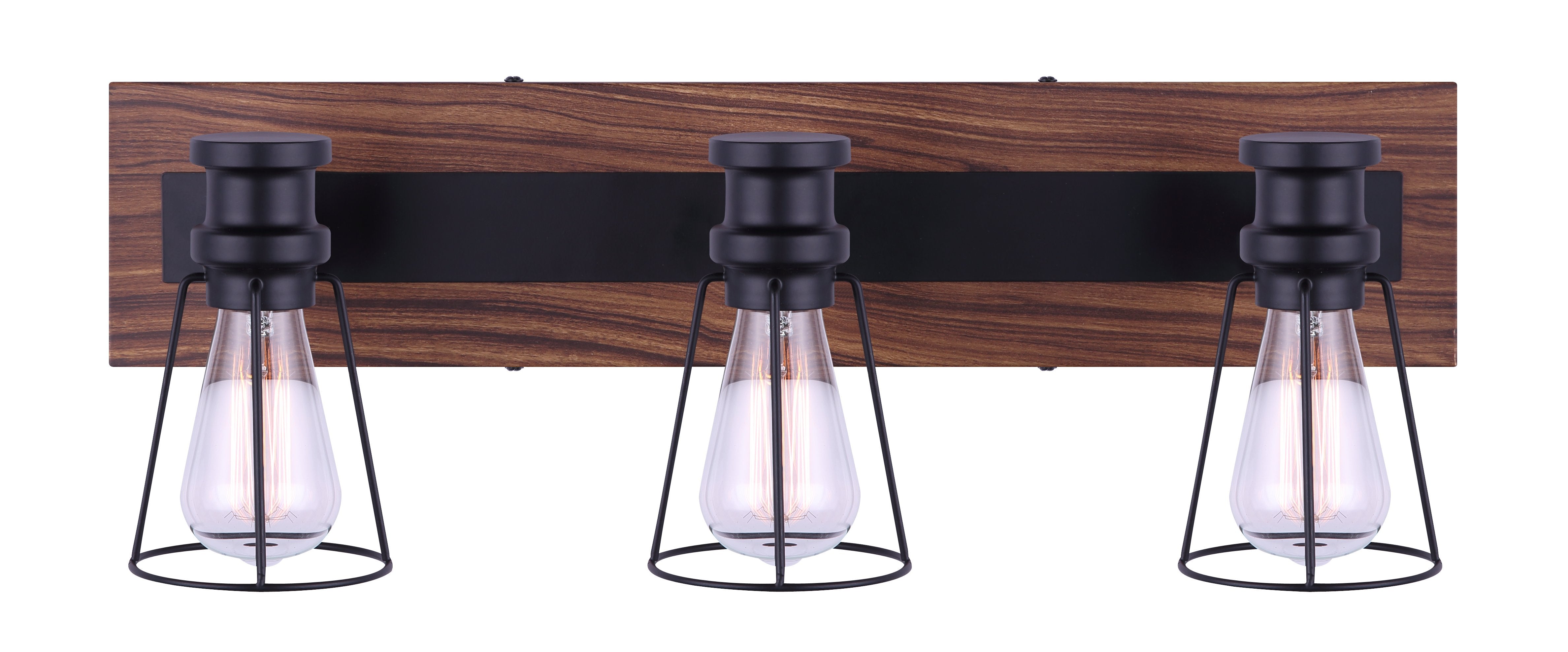 Vanity Light - Canarm BLAKE Matte Black & Wood 3-Light IVL752A03BKW