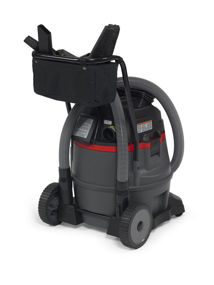 Sturdy Cart, Push Handle and Large Rear Wheels - These features act together to allow the vac to travel easily up/down stairs and over rough terrain and thresholds
