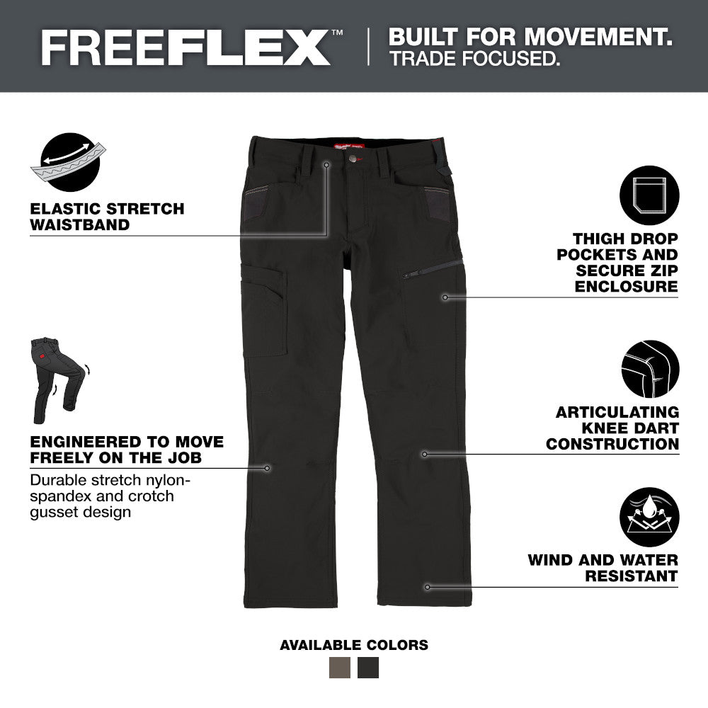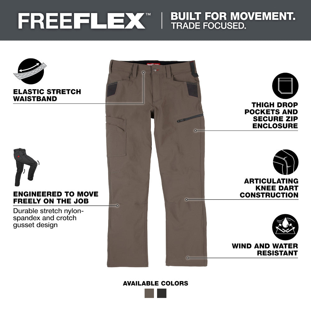 Work Pants - Milwaukee Mens FREEFLEX™ Tech Pants (Black or Brown), M651