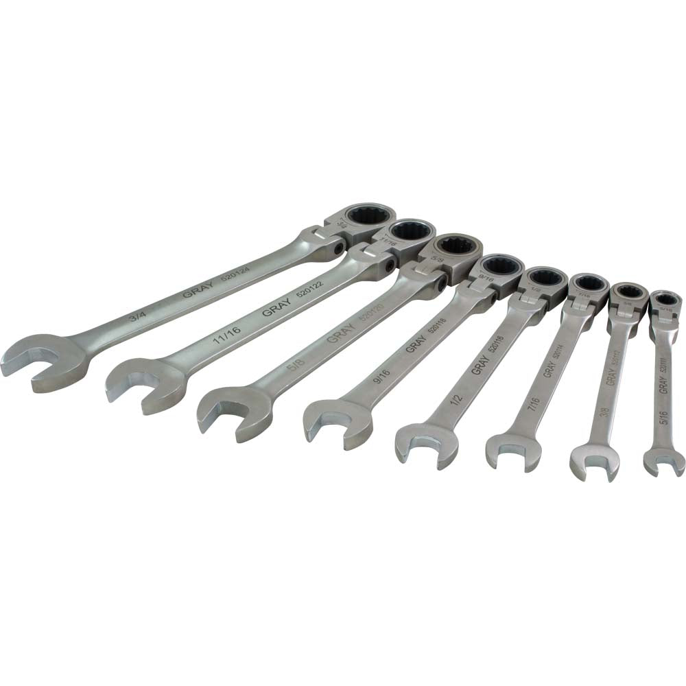 Wrench Set - Gray Tools 8 Piece Flex Head Multi-Gear Ratcheting Wrench Set, 59808A🍁